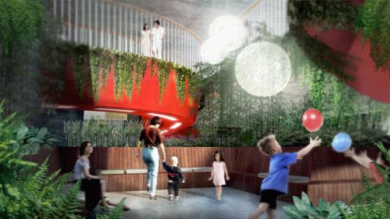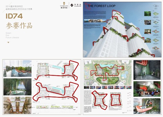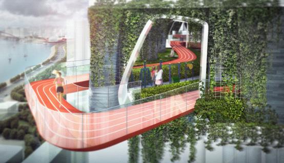 <編號(hào)ID74--評(píng)委沈馳:“提供了一個(gè)造型新穎的空中環(huán)形跑道,且部分延伸出樓體之外”>