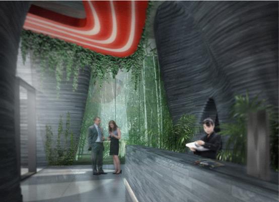 它開(kāi)創(chuàng)性地給每個(gè)綠色空中架空層加入了極易識(shí)別的紅色建筑線條,伸出樓體之外,形成了摩天樹(shù)塔之上“綠色紅花”的感覺(jué),它讓高樓變成生長(zhǎng)、發(fā)芽和開(kāi)花的“活建筑”,隨著季節(jié)改變色彩,簡(jiǎn)單的墻面變得富有詩(shī)意,為城市提供了一座象征城市可持續(xù)發(fā)展的地標(biāo)級(jí)建筑。