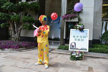 等候區(qū)大門外小丑為小業(yè)主們編織著可愛的氣球,冷餐區(qū)擺放著美麗又可口的糕點,等待業(yè)主們回家享用。