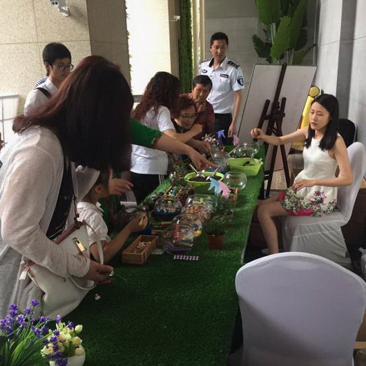 大人紛紛拿起青翠芬芳的粽葉,亮絕活兒。拿兩片油亮的粽葉,在手上圍成一個小圓錐,再把泡好的糯米慢慢灌入,然后把粽葉將糯米裹好,最后再用莖葉仔仔細(xì)細(xì)包扎好,一個可愛又美味的粽子就誕生了!另一邊,天空森林城市也為小孩準(zhǔn)備了節(jié)日禮物。有的在工作人員的指導(dǎo)下,親手打造一個萌萌噠多肉植物盆栽景觀;有的則拿著“小丑”送的氣球,玩得不亦樂乎!