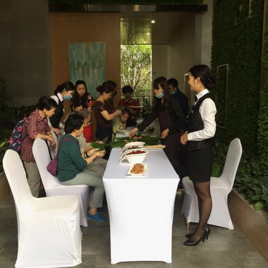 彩縷碧筠粽,香粳白玉團,“粽子”是端午節(jié)必不可少的美味。一大早,天空森林城市的物業(yè)為業(yè)主準(zhǔn)備好了糯米、紅棗、粽葉、香料等,讓前來參與活動的家庭,沉浸在親手為家人包裹愛心粽子的歡樂過程當(dāng)中。