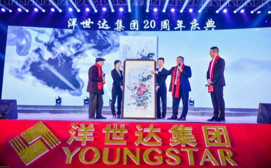 緊接著,來自長壽陽光世紀(jì)城小區(qū),長壽區(qū)老年書畫研究會創(chuàng)始人,82歲高齡的業(yè)主陳老先生,為洋世達20歲生日送來他親手繪制的賀禮《牡丹富貴圖》,集團總裁張志興先生代表全體洋世達員工接受了這一份特別的禮物!