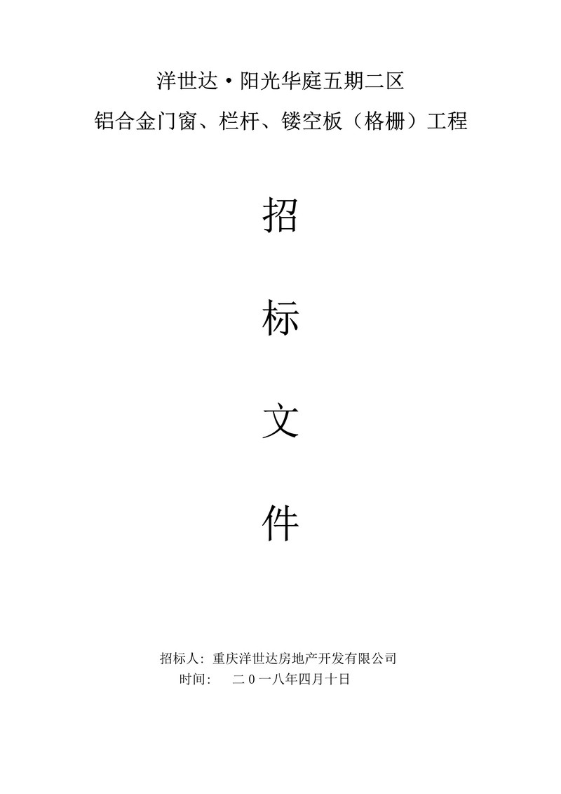 洋世達(dá)?陽(yáng)光華庭五期二區(qū)鋁合金門窗、欄桿、鏤空板(格柵)工程招標(biāo)文件