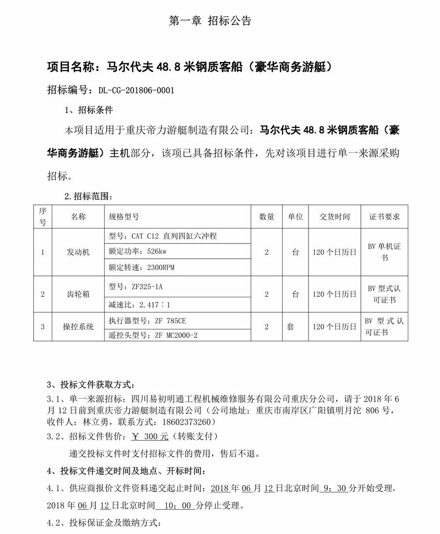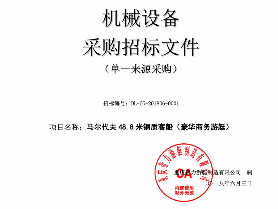 馬爾代夫48.8米鋼制客船(豪華商務(wù)游艇)機(jī)械設(shè)備采購招標(biāo)