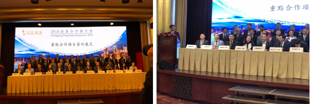 “2018渝港合作推介會”于2018年9月3日在香港舉行。重慶市長唐良智先生攜市商務(wù)委、市港澳辦、經(jīng)信委、金融辦等部門、部分區(qū)縣代表和企業(yè)家組成代表團(tuán),到港推介宣傳重慶投資環(huán)境,分享投資機(jī)遇,深化渝港經(jīng)貿(mào)領(lǐng)域合作。會上24個渝港合作重點(diǎn)項(xiàng)目集中簽約,投資總額達(dá)621億元人民幣。