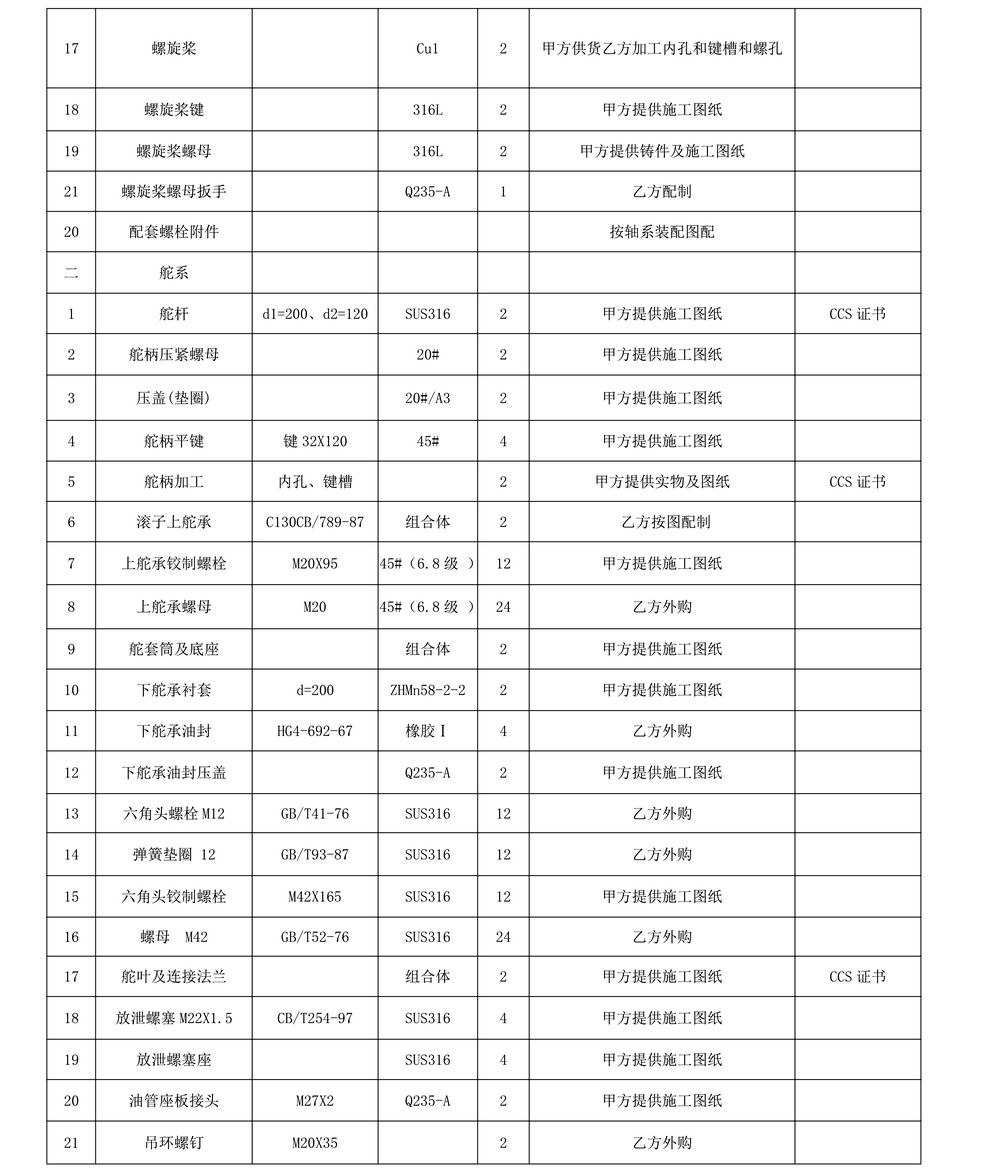 馬爾代夫48.8米鋼質客船(豪華商務游艇)軸舵系部分招標