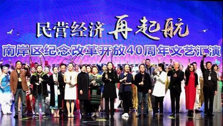 2018年10月30日,由南岸區(qū)委統(tǒng)戰(zhàn)部、南岸區(qū)工商業(yè)聯(lián)合會(總商會)主辦,南岸區(qū)民營企業(yè)家協(xié)會承辦的紀(jì)念改革開放40周年“民營經(jīng)濟再起航”文藝匯演在重慶施光南大劇院隆重舉行。