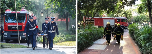 在圣天湖東區(qū)某樓幢7樓住戶家中突然起火(火災(zāi)現(xiàn)場(chǎng)情景模擬),濃煙滾滾?,F(xiàn)場(chǎng)開(kāi)啟了一場(chǎng)生命與時(shí)間的賽跑,一場(chǎng)火災(zāi)消防應(yīng)急救援演習(xí)正式拉開(kāi)了帷幕。