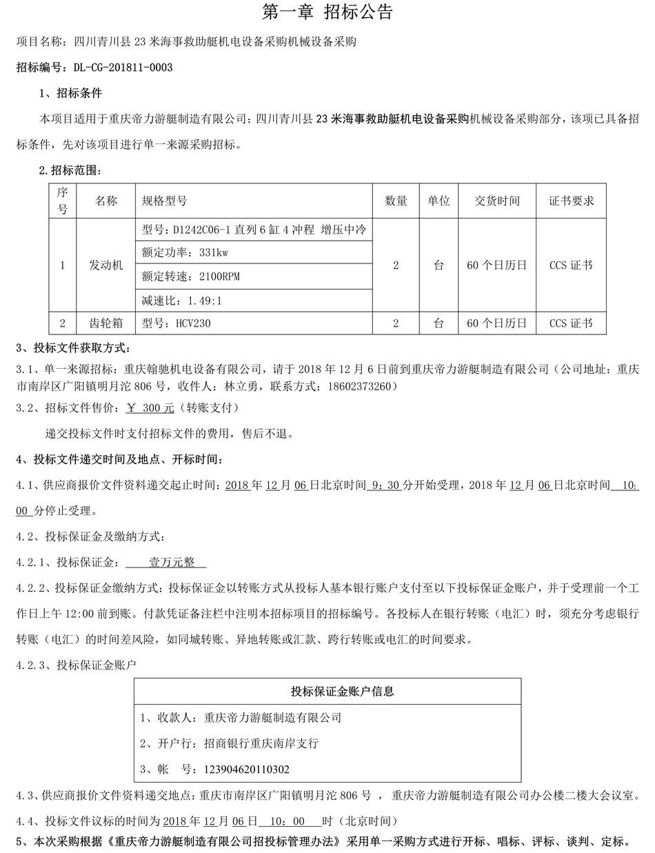 四川青川縣23米海事救助艇機(jī)電設(shè)備采購(gòu)機(jī)械設(shè)備采購(gòu)