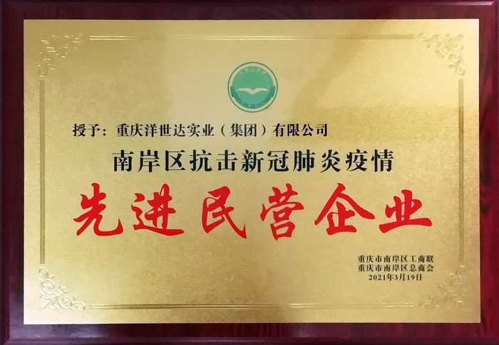 眾志成城,共克時艱,鑒于集團公司在抗擊疫情中的貢獻,重慶市房地產(chǎn)協(xié)會授予重慶洋世達集團抗擊新冠肺炎疫情“先進會員稱號”!