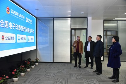 最后,調(diào)研組一行來到重慶國信公鏈印章有限公司走訪。作為公安部第三研究所及CIC國信公鏈研究院全國電子印章管理與服務(wù)平臺重慶市平臺,公司為重慶市內(nèi)政務(wù)部門、企事業(yè)單位、社會組織及個人用戶提供電子印章權(quán)威備案、簽章、查詢、核驗等公共服務(wù),搭建并實現(xiàn)了“公安備案、全國互認、一鍵核驗”的電子印章應(yīng)用服務(wù)體系,為減輕企業(yè)運營成本、打破電子印章區(qū)域應(yīng)用壁壘、助推數(shù)字經(jīng)濟產(chǎn)業(yè)化發(fā)展做出了積極貢獻。