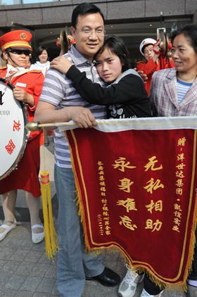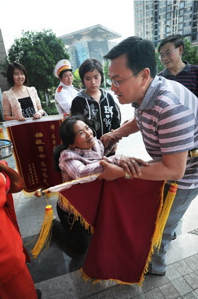 4月8日,洋世達(dá)集團(tuán)公司總裁、凱誼公司總經(jīng)理?xiàng)顒賽?ài)心捐款10萬(wàn)元,用于救助因?qū)W習(xí)用功過(guò)度導(dǎo)致失明的16歲女孩陳心萍,使她得到及時(shí)的救治并終于重獲光明。25日下午,復(fù)明后的陳心萍和母親特別請(qǐng)來(lái)一支鼓樂(lè)隊(duì),敲鑼打鼓來(lái)到“洋世達(dá)?圣天湖”售房部,將一面寫(xiě)有“無(wú)私相助 永生難忘”的錦旗送到楊總手中。得知接錦旗的就是她們母女一直想見(jiàn)的恩人時(shí),陳心萍的母親撲通跪到地上,連聲說(shuō):“你是我家的恩人呀”,楊總急忙上前扶起她,并熱情接待了母女倆。