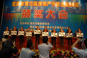 2009年4月18日下午,重慶市第六屆“房地產(chǎn)開發(fā)企業(yè)50強(qiáng)”頒獎(jiǎng)典禮隆重舉行,集團(tuán)公司下屬核心企業(yè)--重慶洋世達(dá)房地產(chǎn)開有限發(fā)公司名列“50強(qiáng)”第17位,這也是我司連續(xù)五屆榮獲此項(xiàng)殊榮。