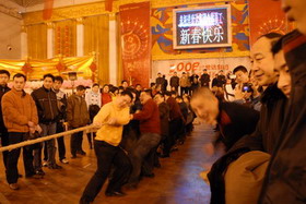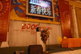 在進行兩個多小時的自由活動后,晚上五點半,大家團聚在一起,舉行了熱烈、喜慶的迎新春團年晚宴。集團公司董事長、總裁楊勇先生發(fā)表了熱情洋溢的新春賀辭,并為全體員工派發(fā)紅包。大家舉起酒杯,共同分享過去一年成功的喜悅,暢談2008年的美好前景,感受家庭般的溫馨和傳統(tǒng)節(jié)日的快樂,盡興而歸。