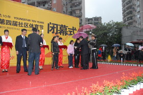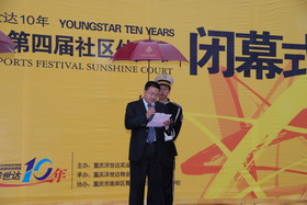 2007年10月28日下午,“洋世達(dá)第四屆社區(qū)體育節(jié)”閉幕式在“陽(yáng)光華庭”小區(qū)入口廣場(chǎng)舉行。本屆“體育節(jié)”共有4000余人次參加比賽,是歷屆“體育節(jié)”中規(guī)模最大、參與人數(shù)最多、組織工作最好、活動(dòng)效果最佳的一次。自“體育節(jié)”開(kāi)幕以來(lái),大家充分弘揚(yáng)“更快、更高、更強(qiáng)”的奧林匹克精神,以優(yōu)良的風(fēng)格、滿腔的激情投入比賽。在近20個(gè)集體和個(gè)人比賽項(xiàng)目的角逐中,共有100余人次獲獎(jiǎng),書(shū)寫(xiě)了重慶市社區(qū)體育運(yùn)動(dòng)的驕人成績(jī)。南岸區(qū)體育局局長(zhǎng)徐華維、副局長(zhǎng)李真平、集團(tuán)公司張志興副總等領(lǐng)導(dǎo)出席閉幕式,并為獲獎(jiǎng)運(yùn)動(dòng)員頒獎(jiǎng)。