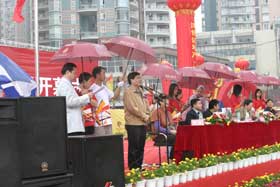 本屆體育節(jié)以“享受健康、享受生活”為主題。來自“洋世達.陽光華庭”小區(qū)的各位業(yè)主、洋世達集團的領導和員工,以及各界來賓共3000多人參加了開幕式。重慶市體育局局長吳建華、副局長段杰、群體處處長杜平,南岸區(qū)委副書記吳伯生、副區(qū)長楊才明、體育局局長張胤,洋世達集團總裁楊勇及各位領導參加了開幕式。隆重的入場式上,由洋世達企業(yè)旗、體育節(jié)會旗、彩旗隊、運動員和裁判員近2000人組成的16個方隊,以激情奔放、整齊矯健的步伐邁步入場。在莊嚴的升國旗、奏國歌儀式,以及領導講話、運動員和裁判員代表宣誓后,重慶市體育局吳建華局長宣布本屆體育節(jié)開幕。小區(qū)業(yè)主及可愛的少年兒童們,進行了精彩的文藝節(jié)目表演。