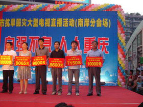 | 集團公司現(xiàn)場捐款獻愛心 (右一) | 抗旱賑災直播現(xiàn)場 |